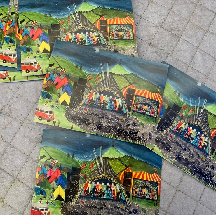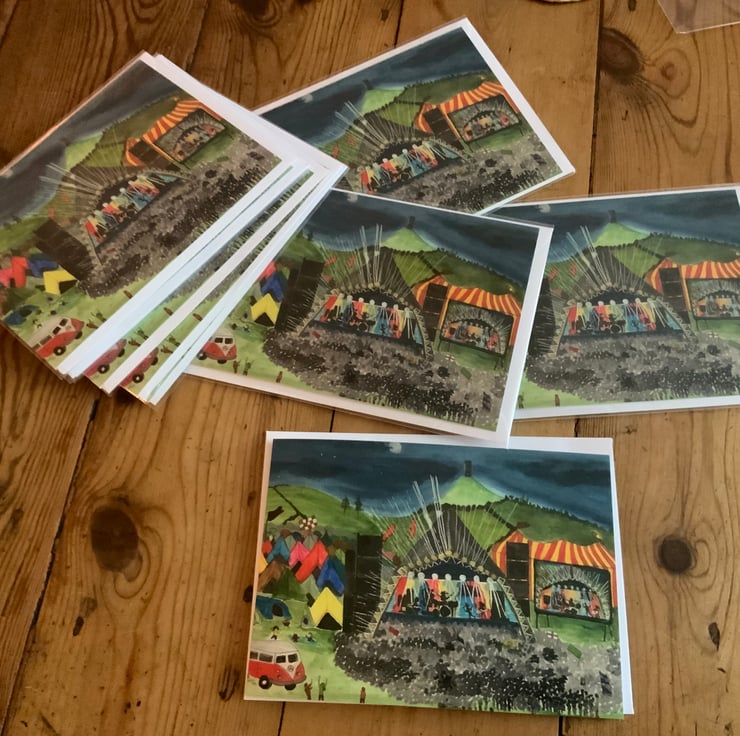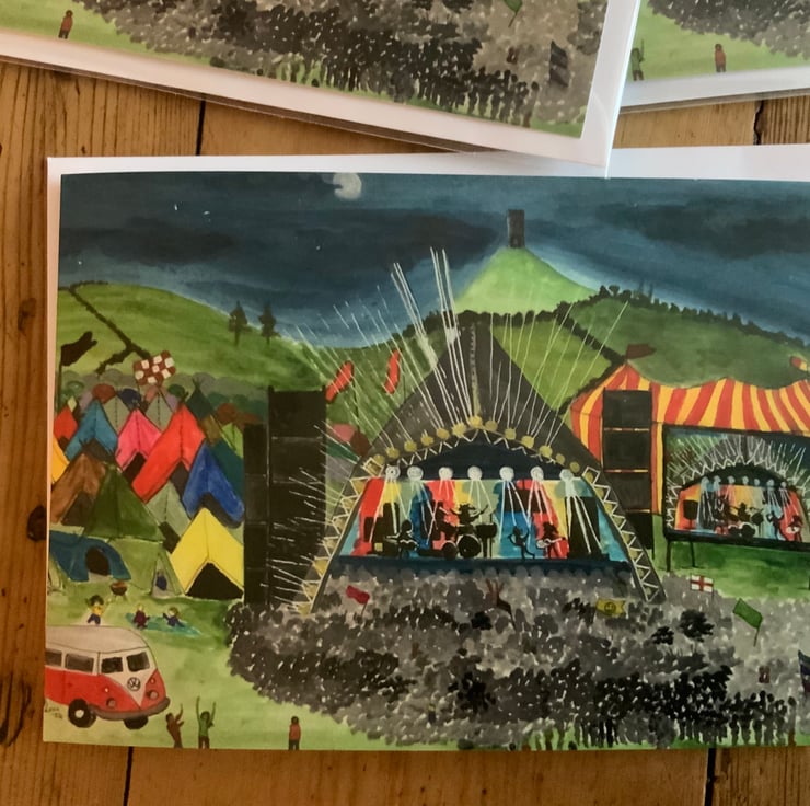 A Glastonbury Festival greeting card print of my original painting. Blank inside for your own message.