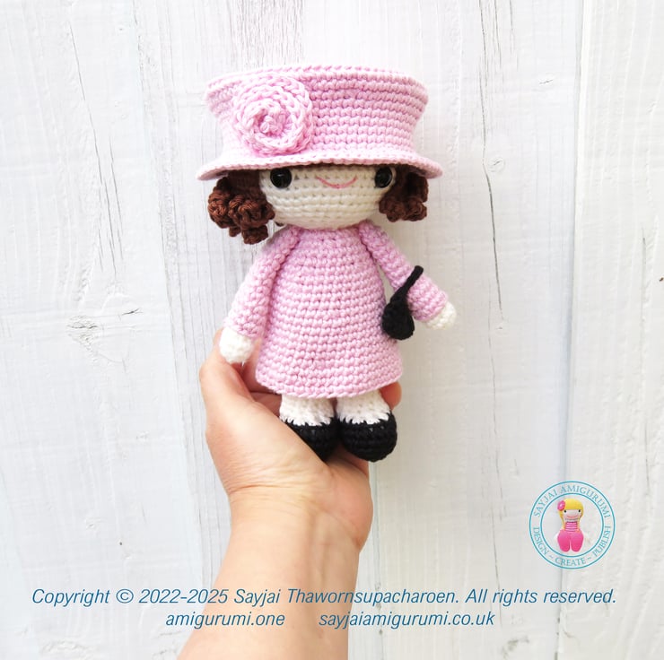 The finished size of the Lizzie Amigurumi Crochet Doll is 6.5 inches (16.5 cm) tall (excluding the hat).