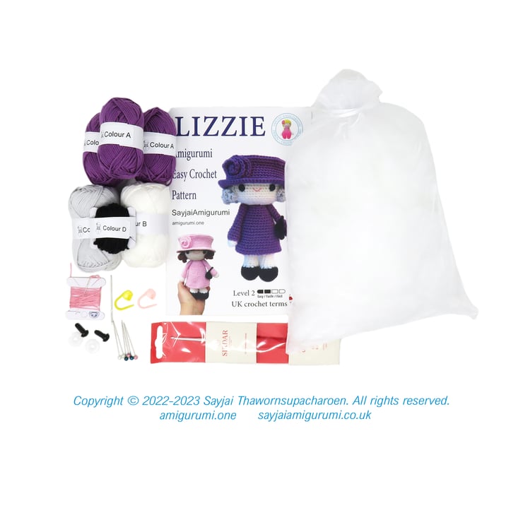 This is a Complete Crochet Kit for the Lizzie Amigurumi Crochet Doll, NOT for BEGINNER
