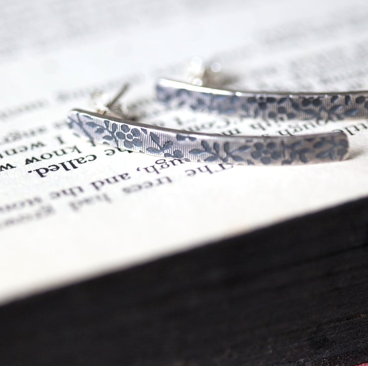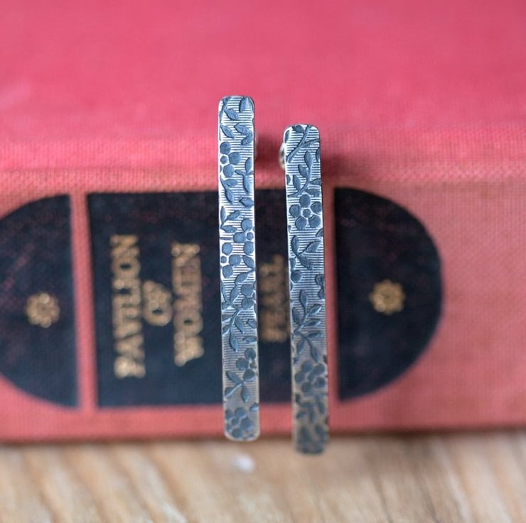 The front of the earrings have an oxidised silver finish in contrast to the polished silver on the back. With sterling silver posts they are designed for pierced ears. The daisy pattern is completely unique to each pair of earrings for a special touch.