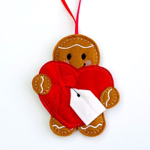An adorable Gingerbread that would make a gorgeous little gift for Valentines Day or even a Birthday or Mothers day. Holding a heart shaped box of chocolates. No calories in these.