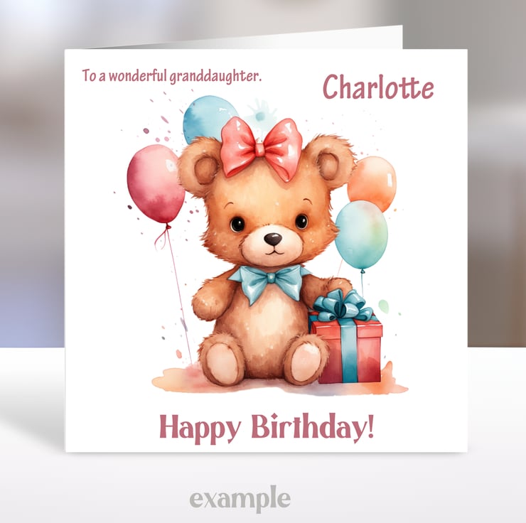 You can choose to add a name and your relationship to the recipient, and the age. Otherwise the card will simply say 'Happy Birthday on the front in either pink or blue.