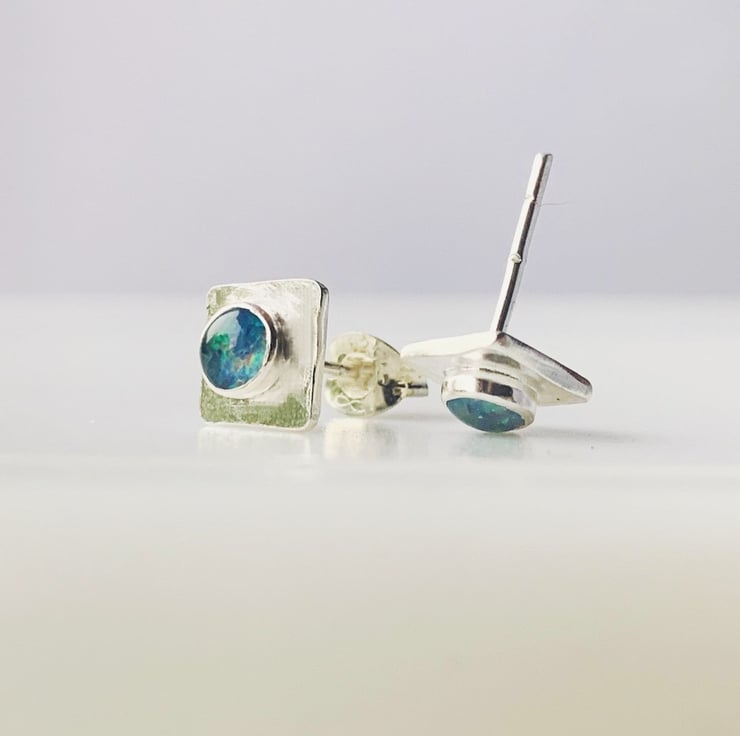 Little 6 mm Square studs with a 4 mm Opal Triplet Cabochon cut (Smooth domed top)