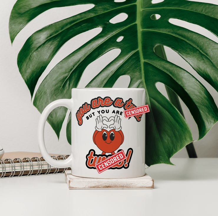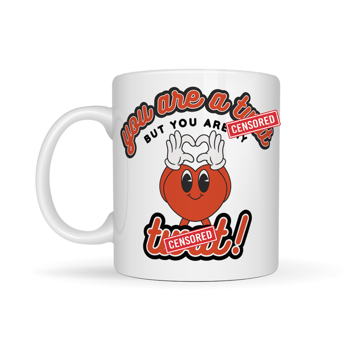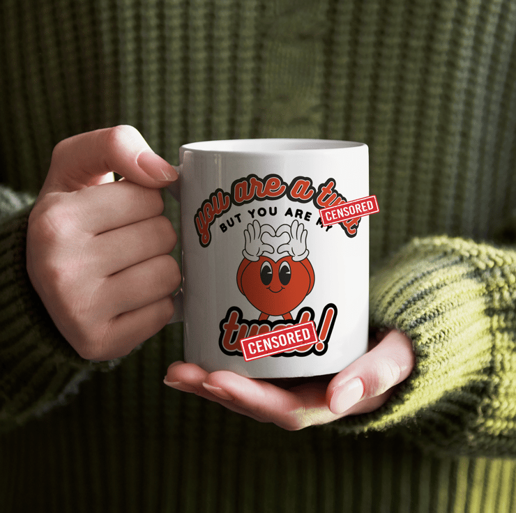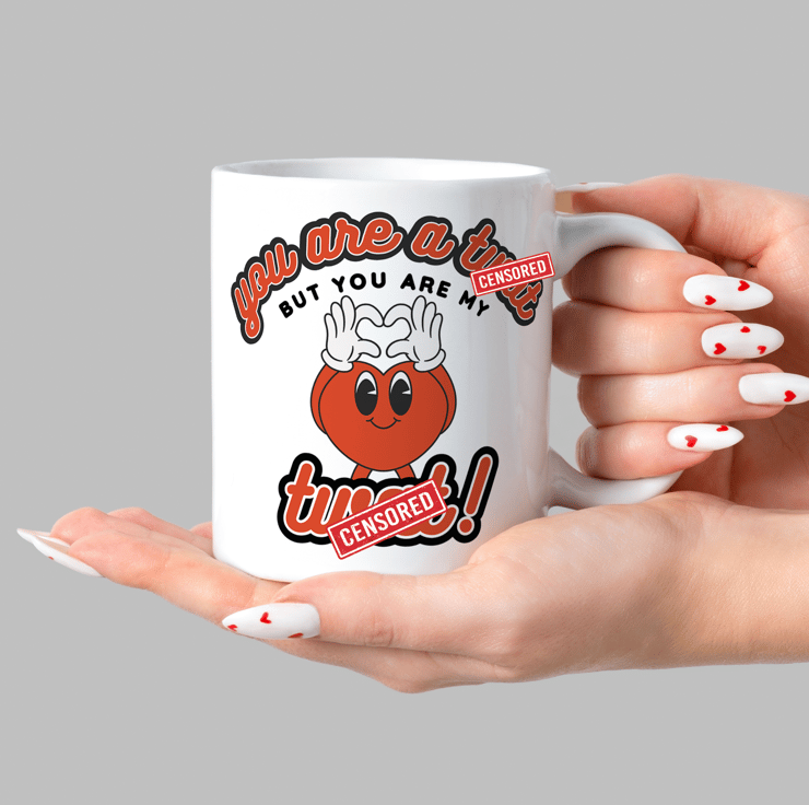 Show your love with a cheeky twist! This playful mug features the fun phrase “You are a tw't, but you are my tw't”. Perfect for that special someone who can take a joke. A great conversation starter and the perfect gift for the one who’s always a little bit of a tw'tbut your favourite one!
