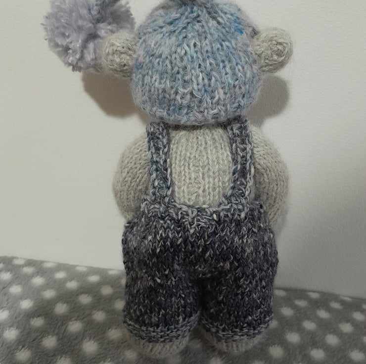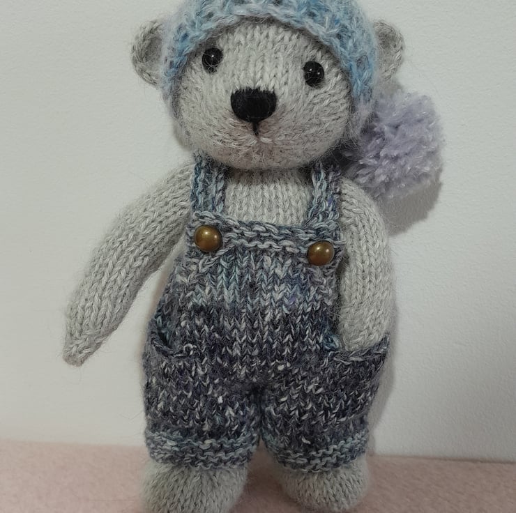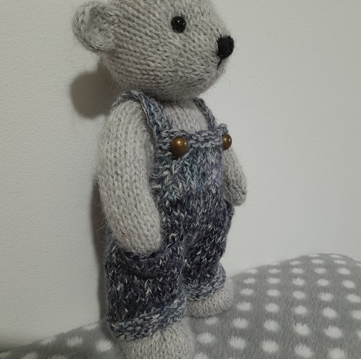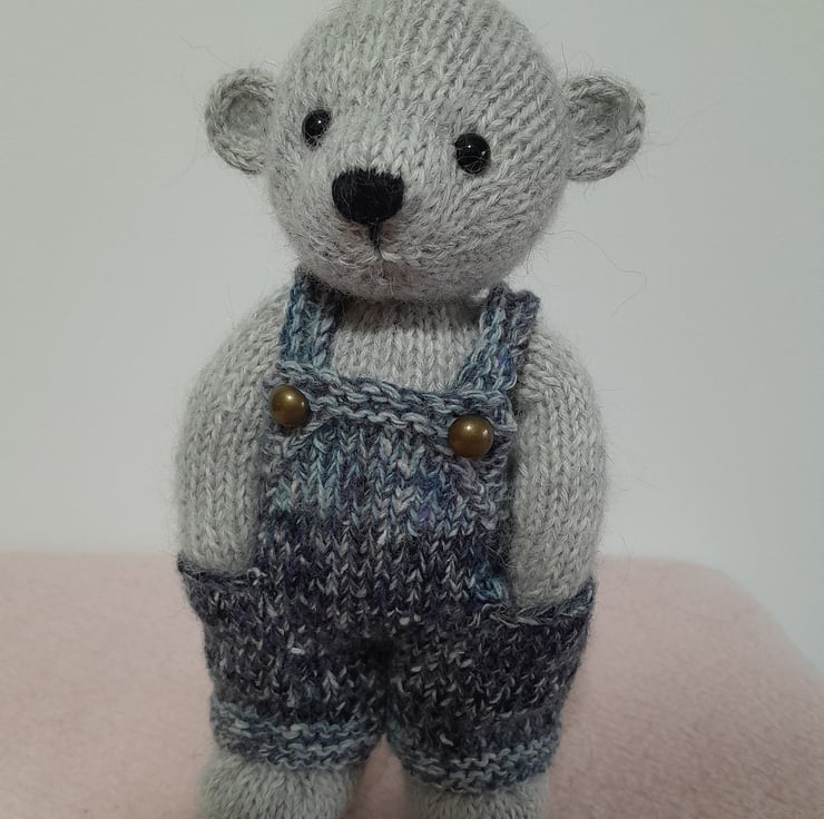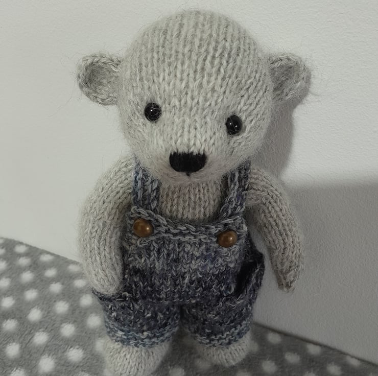 Bears are a favourite at any time of year but with Valentines Day looming and Mothers Day not too far behind this little bear would make a perfect gift for a bear loving friend, a favourite teacher, or just for yourself. This sweet little grey bear measures 9" ( 23cm) and is knitted in alpaca yarn with a fine strand of mohair.