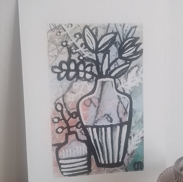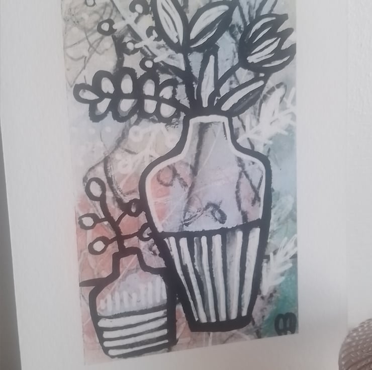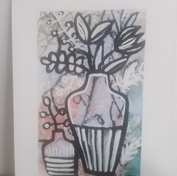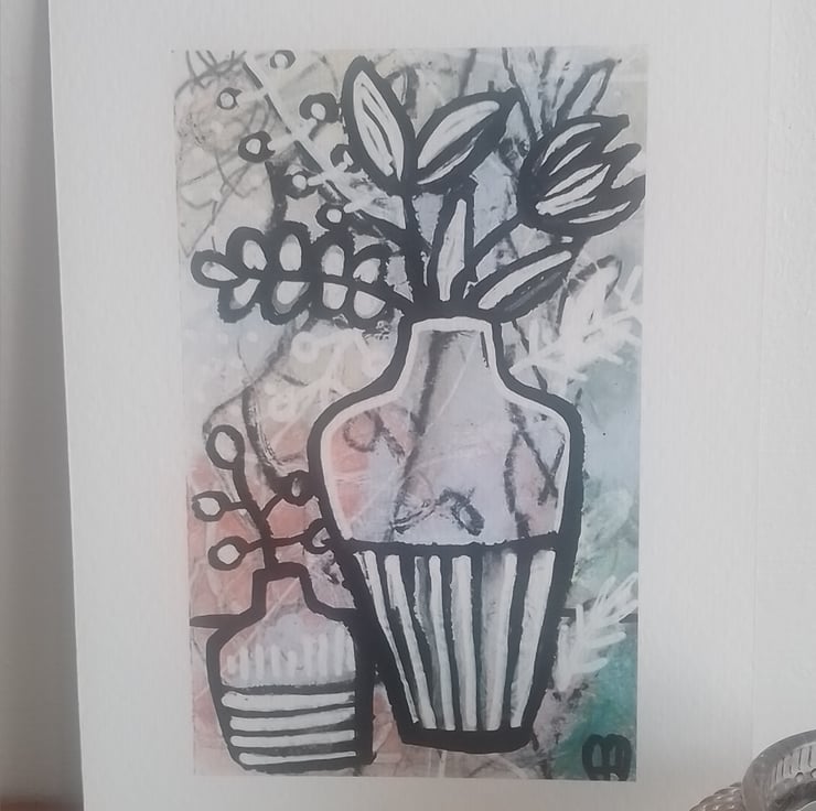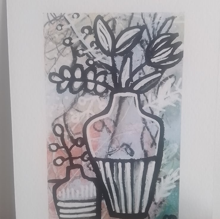 A striking and beautiful monochrome image depicting Wildflowers & Vase ...fast becoming one of my favourite things to paint!