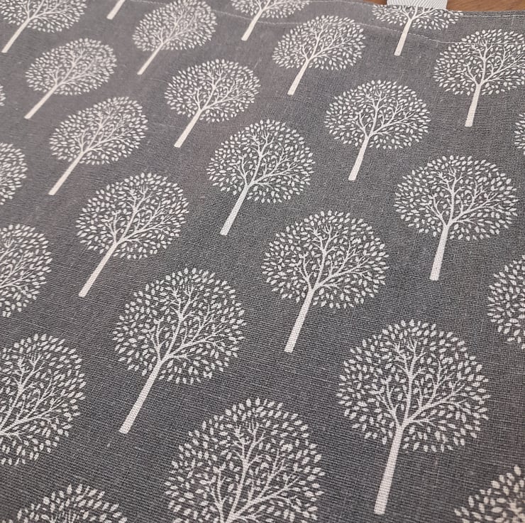 Mulberry Tree design tote bag in grey and cream, natural cotton rich, linen look fabric, with cotton webbing, grey handles. Folds up for you to keep in your bag or pocket