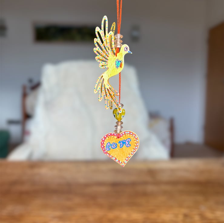 1 hand painted flying bird hanging ornament.
