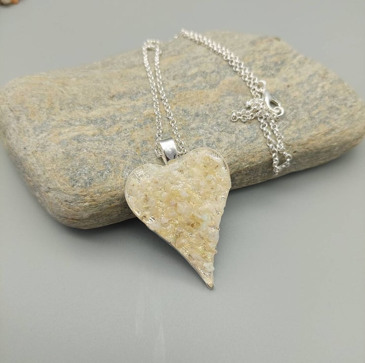 Opal Pendant, Resin and Gemstone Pendant, Heart Necklace, Birthstone Jewellery,