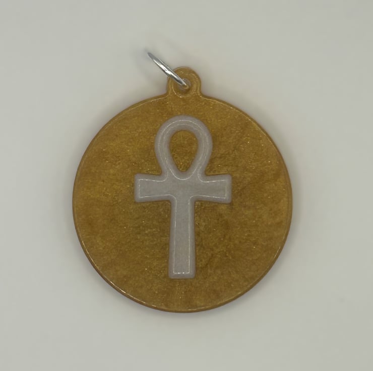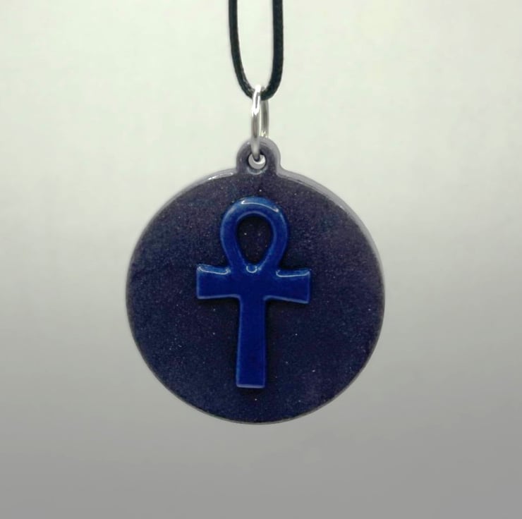 Wow, what a stunner, this fabulously Ankh or Key of Life disc is just a treat for the eyes. Made from eco friendly resin the centre features an Ankh symbol in disc of luxurious colour. This pendant is seriously stunning and will be the key in getting you noticed! It's design may be simplistic but that only adds to its aesthetic quality and charm. If you like your jewellery to have an impact then, go on invoke your inner goddess and treat yourself to this lovely piece of jewellery.