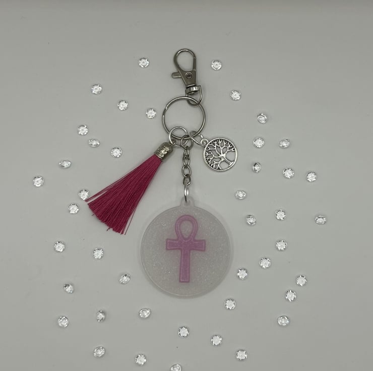 On the other hand you may prefer a keyring to keep all your keys tidy and easily locatable. Or how about a bag charm to accentuate and accessorise your wardrobe. It comes in several colours - see other variations, which means you can colour co-ordinate each day. The bag charm has a plated Tree of Life charm and lovely dangling tassel. With this versatility it makes a wonderful gift or keep it for yourself.