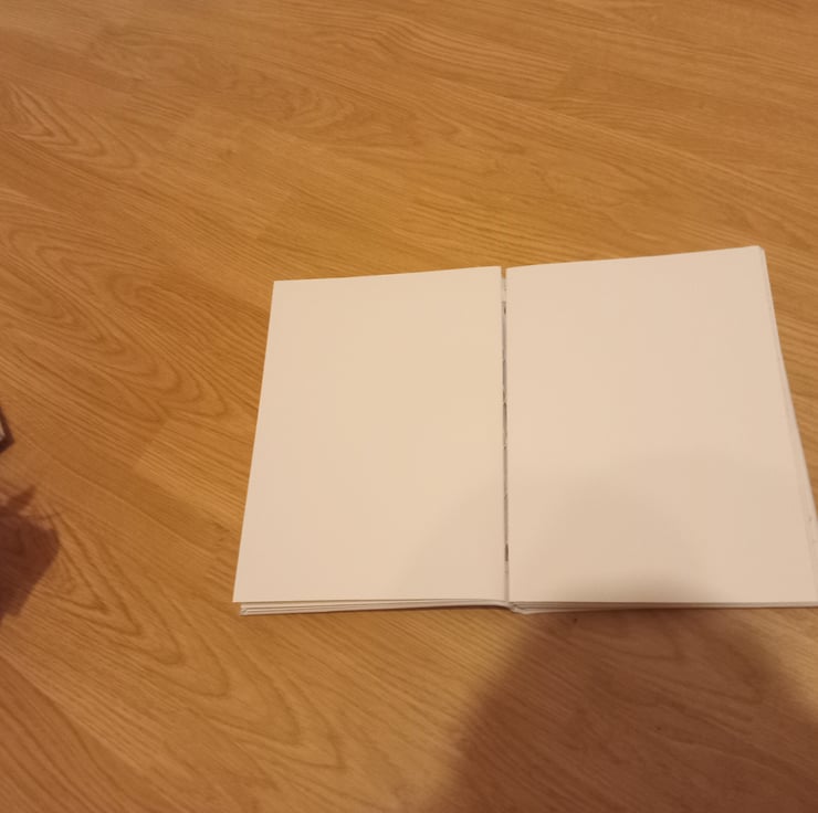 Made with budget 190 gsm watercolour paper, unglued spine design with leather and greyboard cover around. Loads of flaws, especially on the leather, which is damaged a d one of the corners not done properly.
