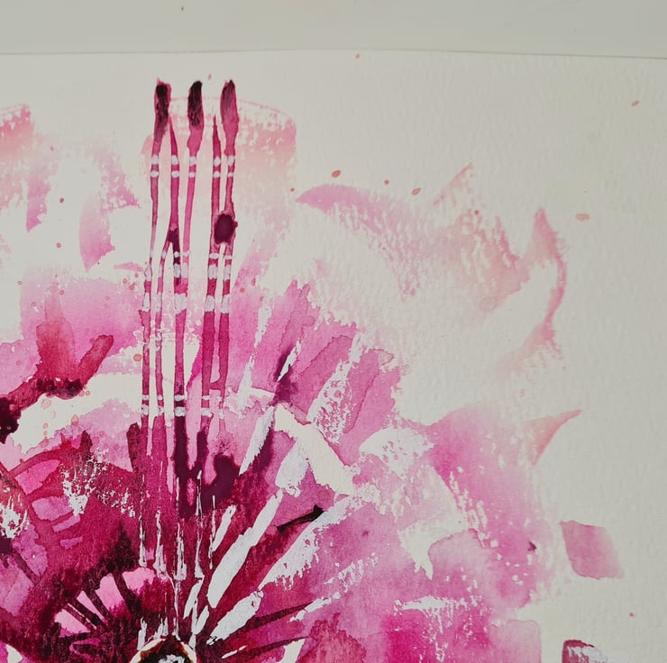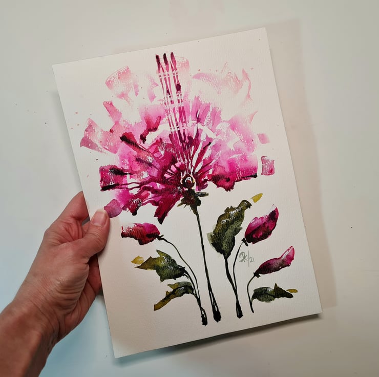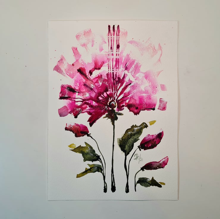 Original intuitive watercolour painting - semi abstract flower - a rose or a peony - full of life and energy