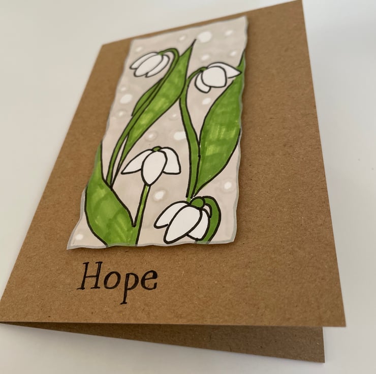 Hope. Something we all need from time to time. This card features a snowdrop design. I think the sight of snowdrops always gives us hope of better days to come.