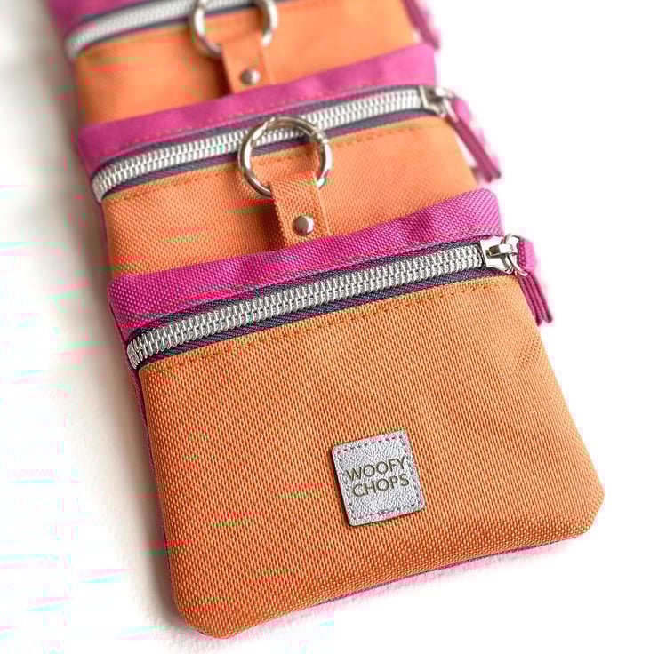 Please Note: For your dogs safety, Woofy Chops treat bags are not a toy. They are designed to only be attached to a responsible human, and are not to be attached to your fun-loving hound on the ground. Our four-legged friends like to run through the woods, charge through undergrowth, jump into streams and roll in muddy puddles; attaching a treat bag directly to your dog on their wonderful adventures could raise the risk of your treat bag (and your dog) getting caught or snagged on something. Please do check your treat bags regularly for wear and tear and usability of the product for your pet. No pet accessory is indestructible. It is the buyers responsibility to assess the suitability of Woofy Chops products for your pet. Woofy Chops is not responsible for any injury, loss or damage incurred whilst using any of it's range of products and accessories.