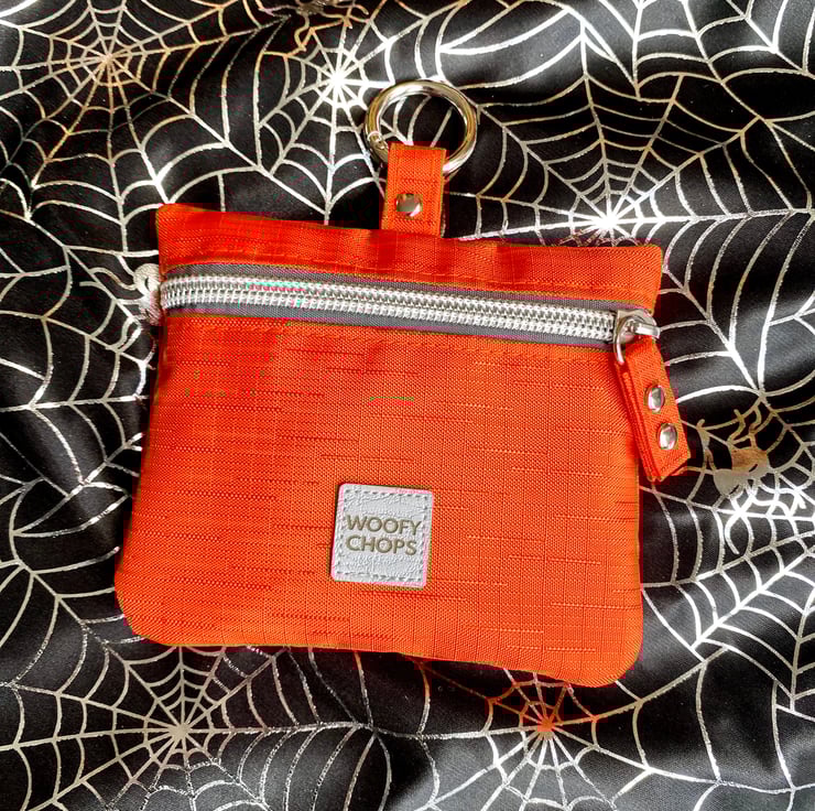 The Treat Pod is made with a chunky zip for easy open/close and means you can zip it up and not risk the contents spilling out when you bend over to fuss your dog or are picking up those poops! The funky sprung O Carabiner is of course included and means you are all set and ready to just clip it on to you, your bag or even your lead and away you go!