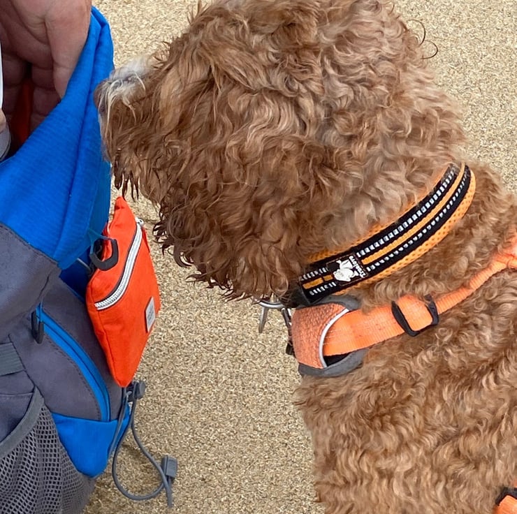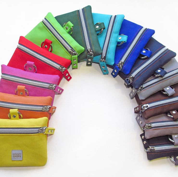 Please Note: For your dogs safety, Woofy Chops treat bags are not a toy. They are designed to only be attached to a responsible human, and are not to be attached to your fun-loving hound on the ground. Our four-legged friends like to run through the woods, charge through undergrowth, jump into streams and roll in muddy puddles; attaching a treat bag directly to your dog on their wonderful adventures could raise the risk of your treat bag (and your dog) getting caught or snagged on something. Please do check your treat bags regularly for wear and tear and usability of the product for your pet. No pet accessory is indestructible. It is the buyers responsibility to assess the suitability of Woofy Chops products for your pet. Woofy Chops is not responsible for any injury, loss or damage incurred whilst using any of it's range of products and accessories.