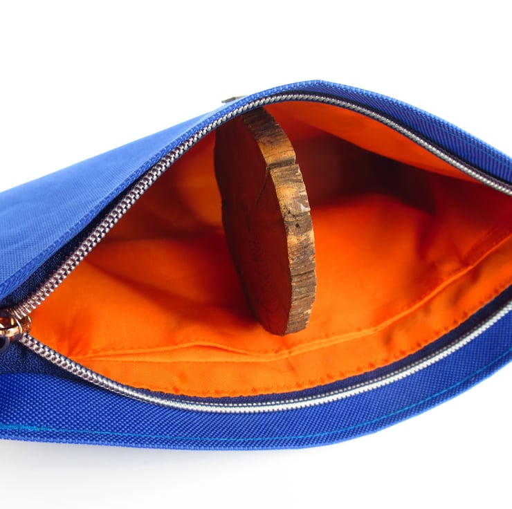 The exterior of the flat pouch is made from is a waterproof canvas, and the internal lining is made from a lovely bright orange wipe clean water resistant fabric. The Interior features one small internal pocket too, ideal for storing little scissors, tick removers, storing any fleatick tablets or some nail clippers.