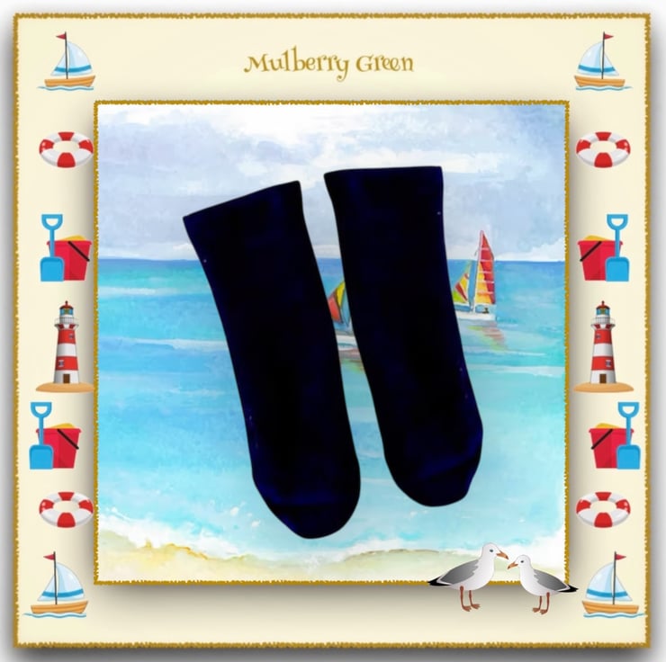 A cute little pair of Navy socks to fit the Mulberry Green characters. The socks look lovely with the little felt shoes.