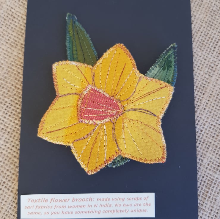 Each brooch is backed with a coordinating cotton. Each brooch is different and therefore makes a unique gift.