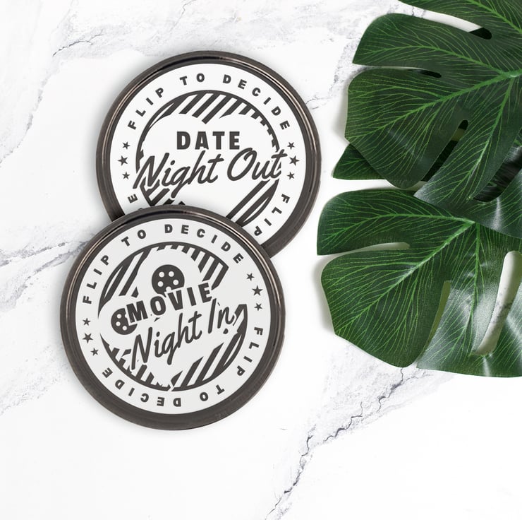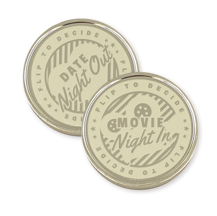 Can’t decide between a cosy night in or a fun outing? Let fate decide with this stylish Date Night Decision Flip Coin! Designed for couples who love spontaneity, this coin features "Date Night Out" on one side and "Movie Night In" on the other, making it a playful yet practical way to plan your evenings.
