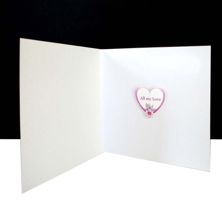The message on the front of the card says.. ‘To the one I Love on Valentines Day’ and inside is a hand-cut heart image with ‘All my love’