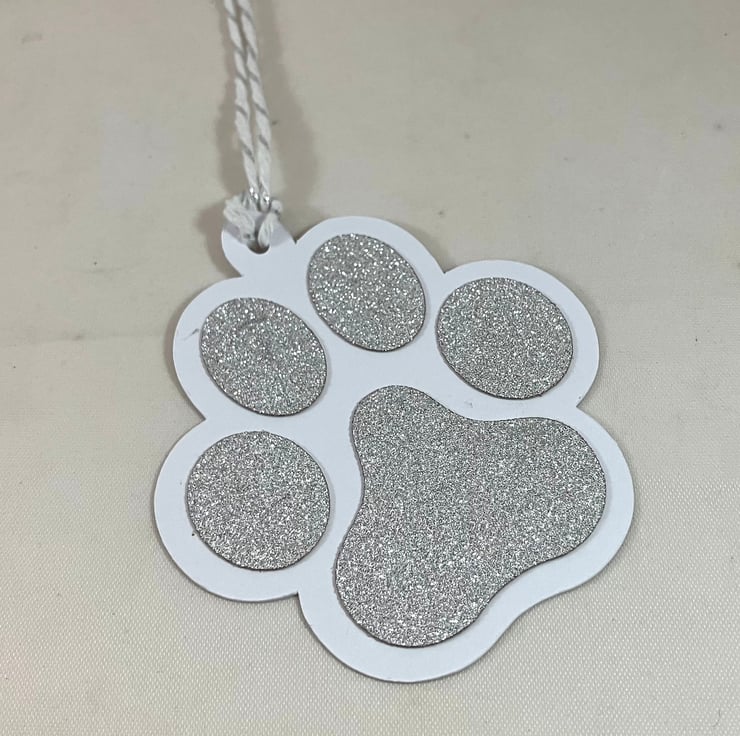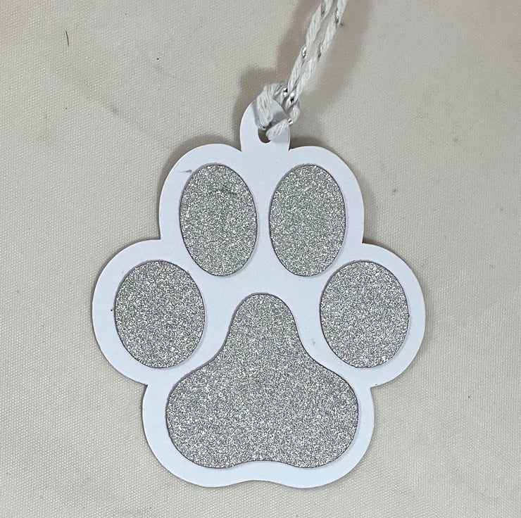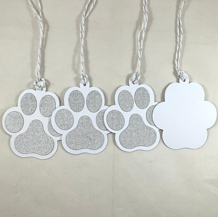 Silver glitter card paw print gift tags