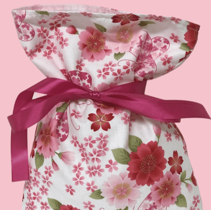 Very pretty pink Japanese fabric reusable gift bag, perfect for presenting that special gift.