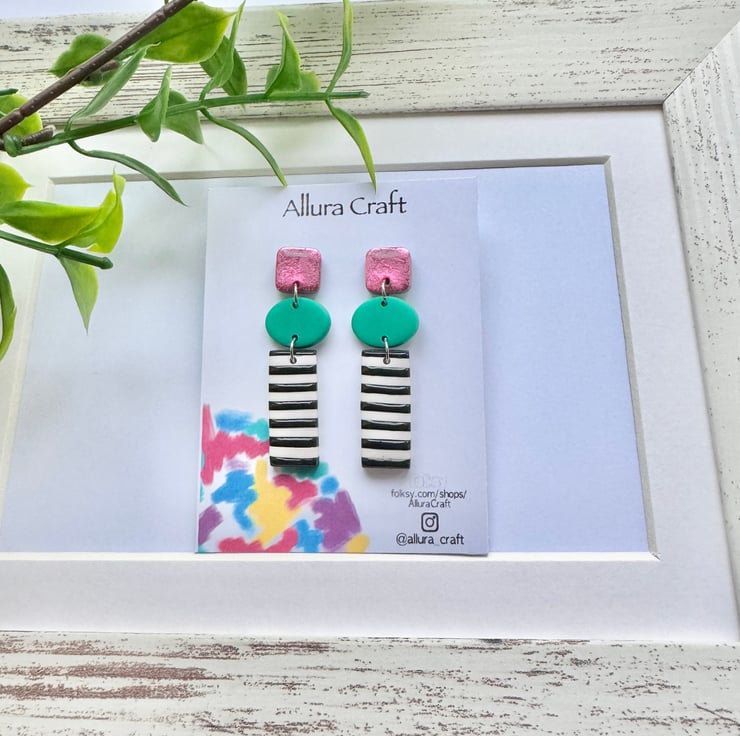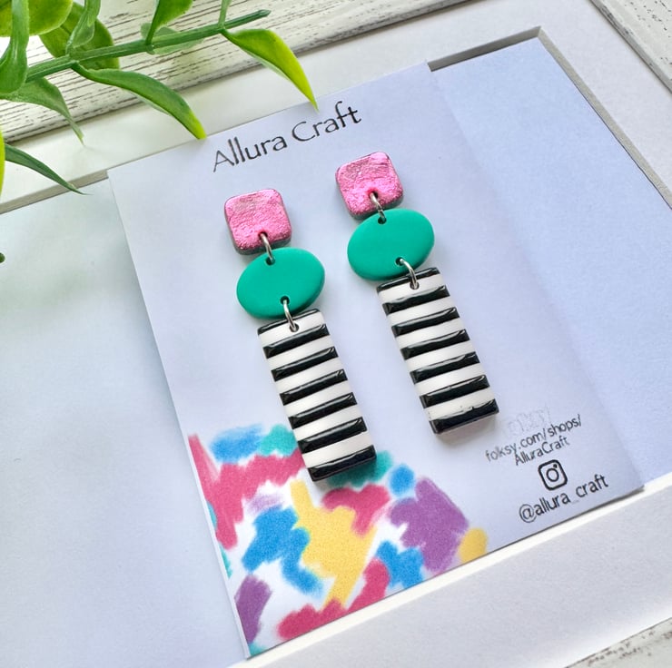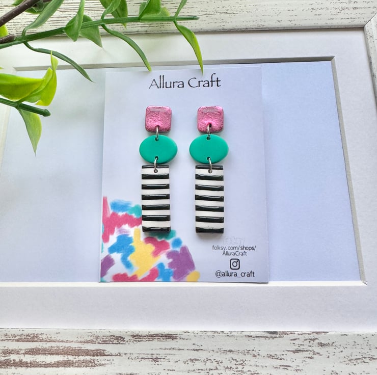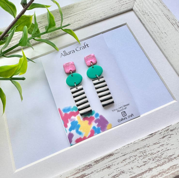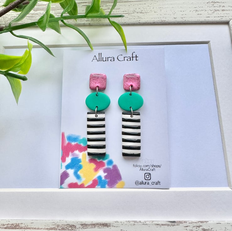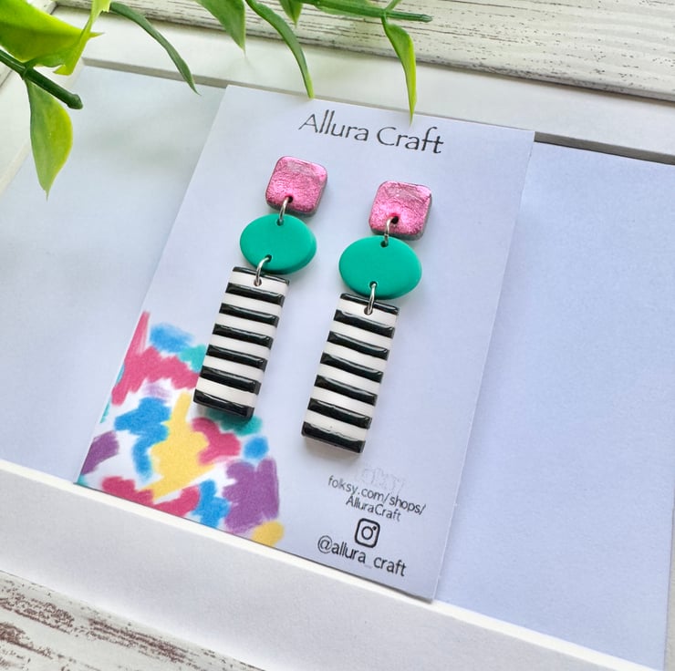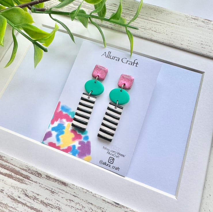 With a black and white stripe rectangle with the black meticulously and carefully highlighted with uv resin