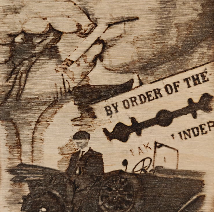 Custom Pyrography on A4 sized 21cmx30cm 3mm plywood. Finished with clear varnish and a hanging hook