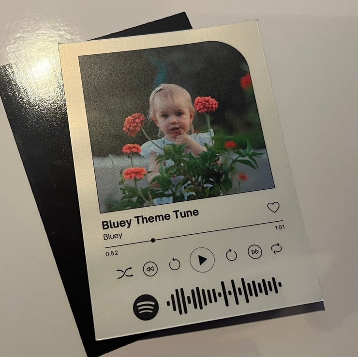 We’re excited to announce that we now sell personalized fridge magnets designed to look like a Spotify track display!