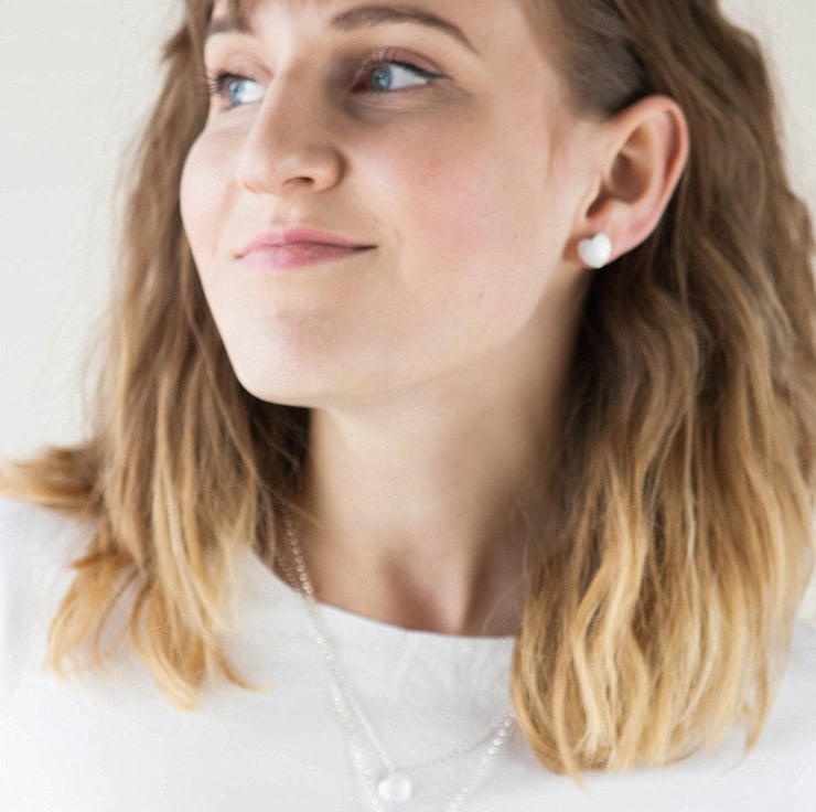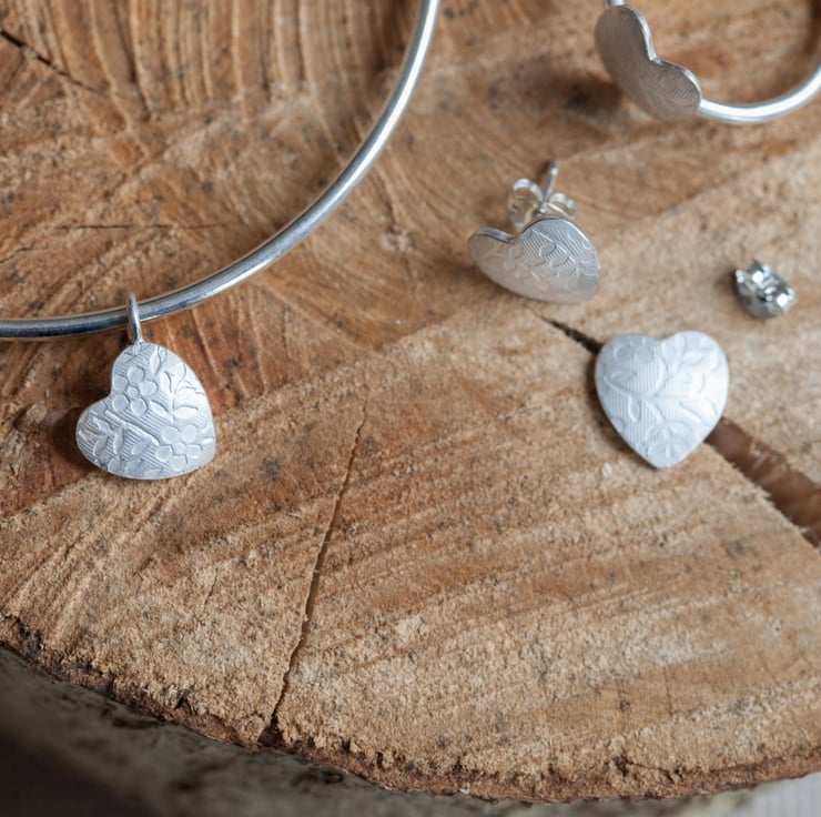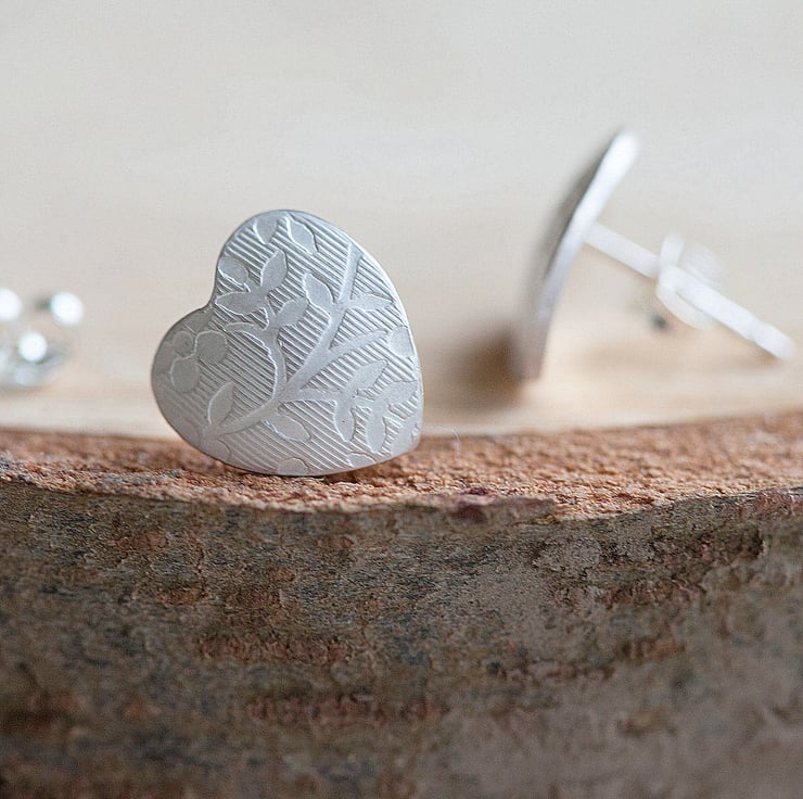 Each hand cut heart is sustainably made the traditional way and has a stud back for pierced ears. These sterling silver earrings are curved with a subtle matte silver finish. Their minimalist design means they can be worn every day.