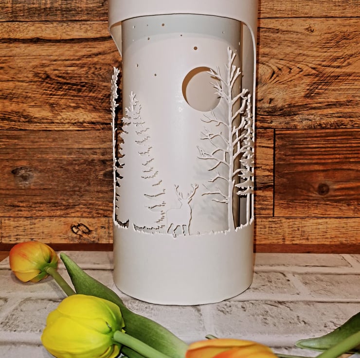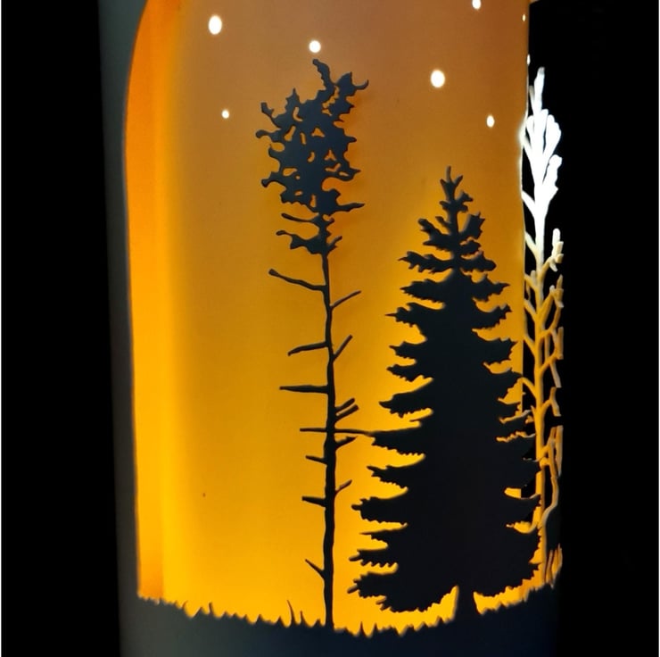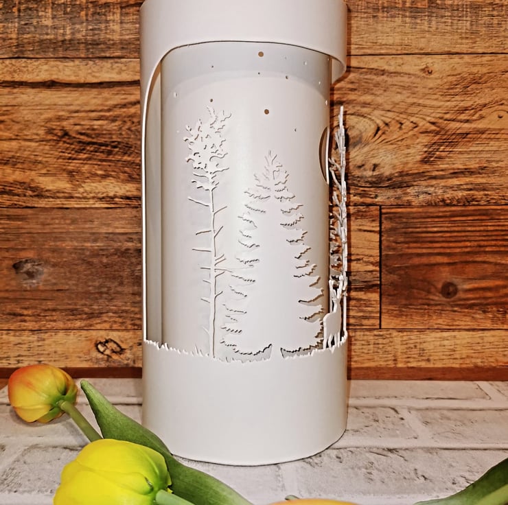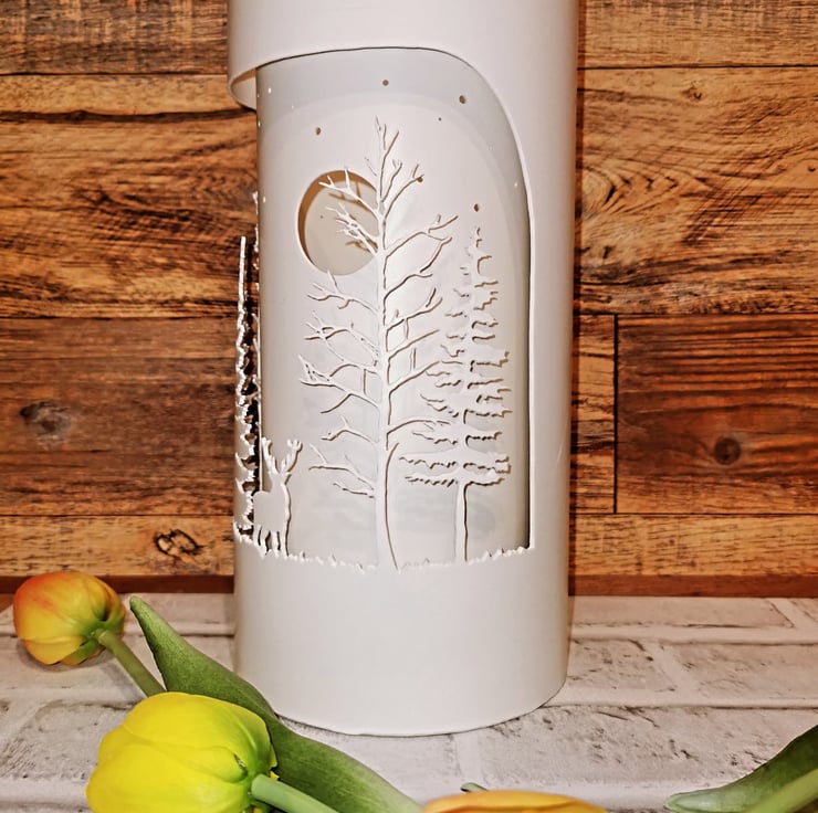Hand-crafted table lamp, made of Pvc pipe with a plywood base. Battery operated, Colour changing light (batteries not included). 25cm tall and 12,5cm wide.