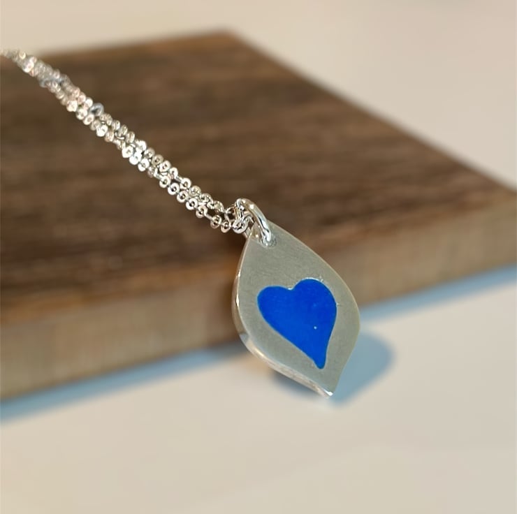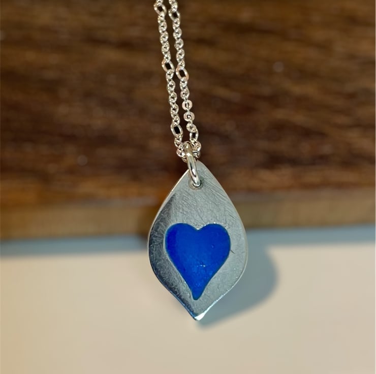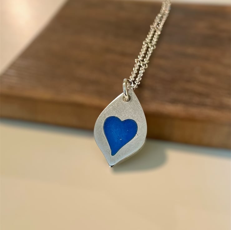 Just in time for Valentines this pretty enamel pendant in fine silver with a gorgeous lavender coloured enamelled heart. It hangs from an 18 inch sterling silver chain.