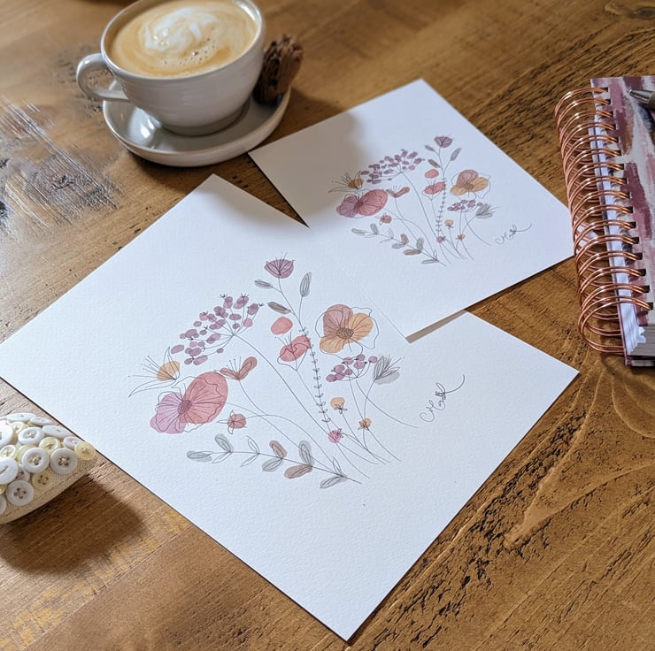 Floral Watercolour print - Meadow Lines ( Lilac hue) designed lovingly by the artist using digital watercolour and professionally printed onto 300gsm textured paper