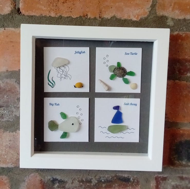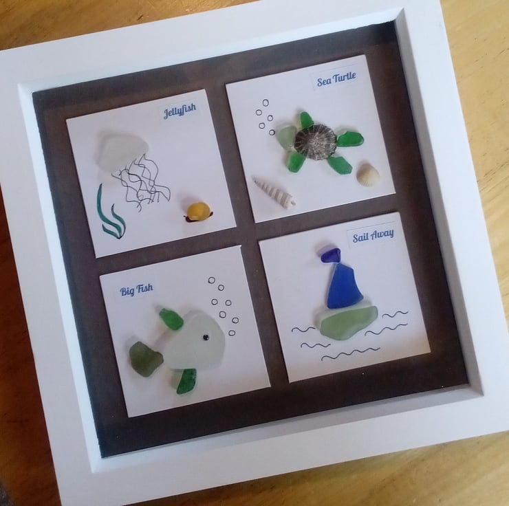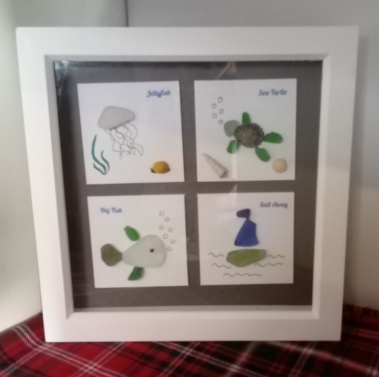I collect my seaglass from my local beaches on the west of Scotland. These tiny pieces of beach treasure are perfect to re-purpose in these pretty seaglass pictures.