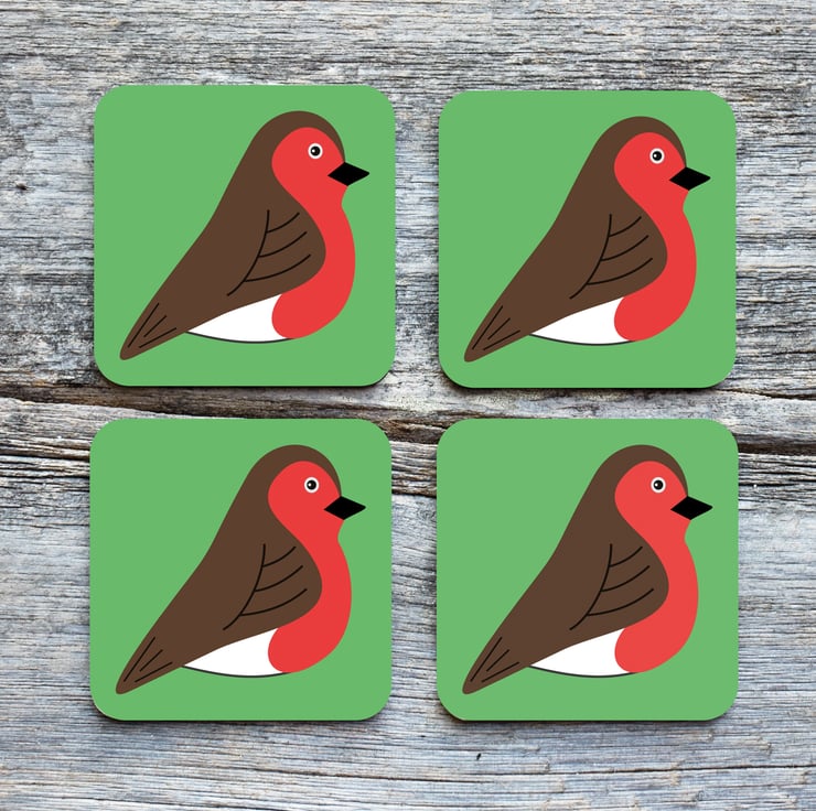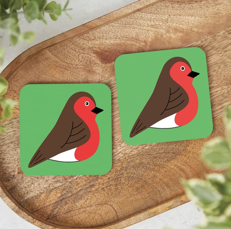 Choose either one coaster or a set of 2, 4 or 6 coasters from the drop-down menu, all in the same robin design.