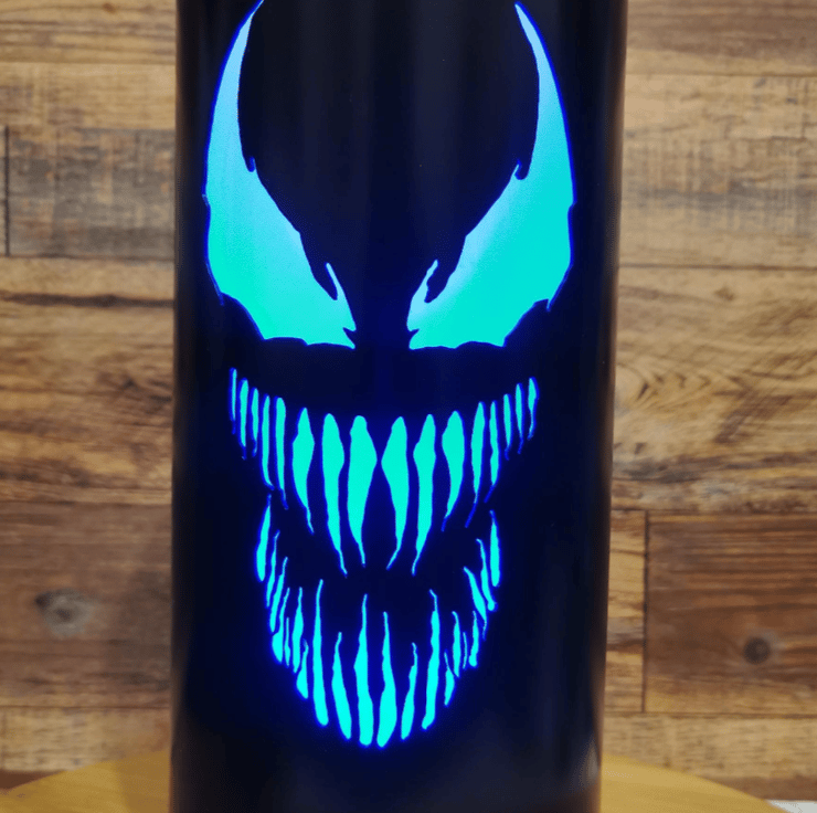 Hand-crafted table lamp, made of Pvc pipe with a plywood base. Battery operated, Colour changing light (batteries not included). 33cm tall and 12,5cm wide.