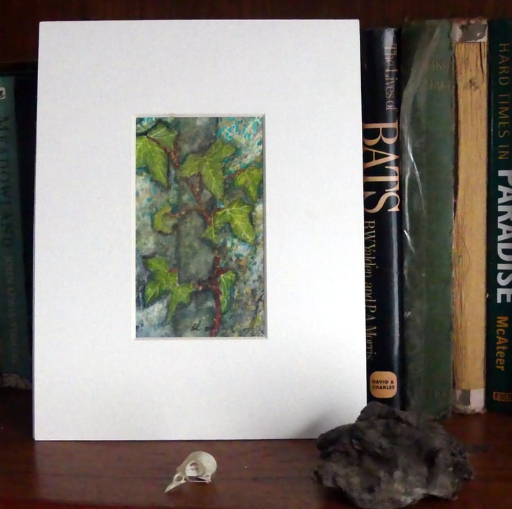 The painting is 2.75 x 4.75 inches , 7 x 12 cm and comes with a 9 x 7-inch, 23 x 18 cm white mount