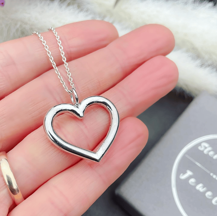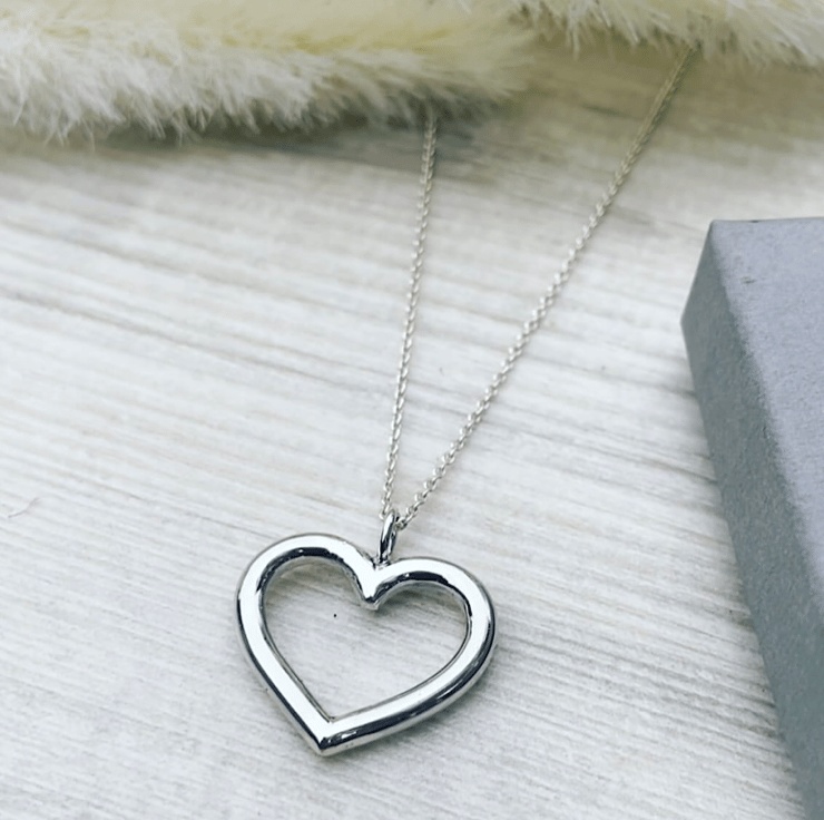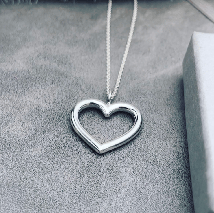 This is a chunky sterling silver open heart necklace made from chunky 3mm recycled sterling silver wire.