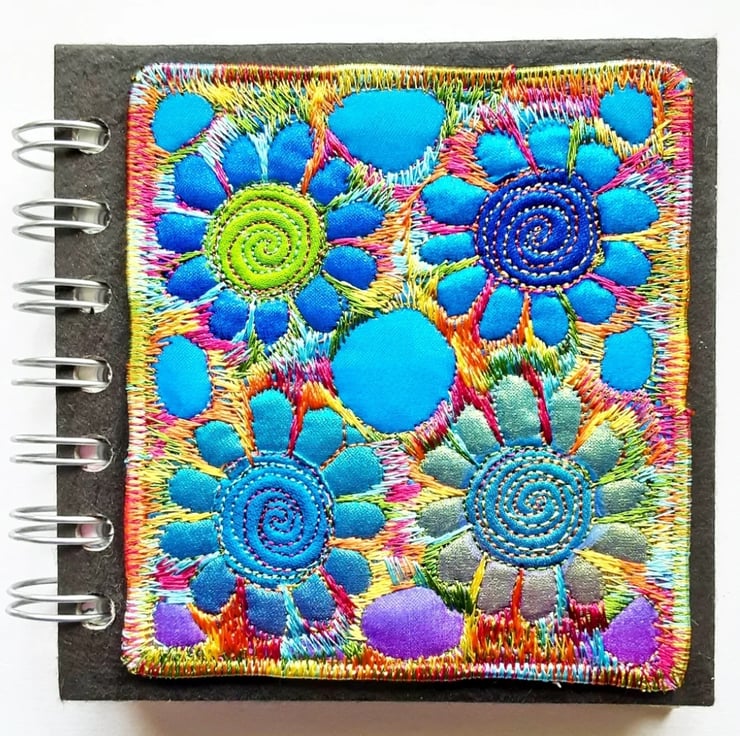 The cover is made from layers of fabric including hand dyed Egyptian cotton and silk fabrics using the free machine embroidery style of sewing