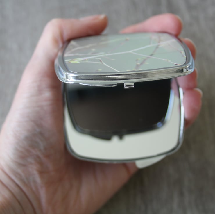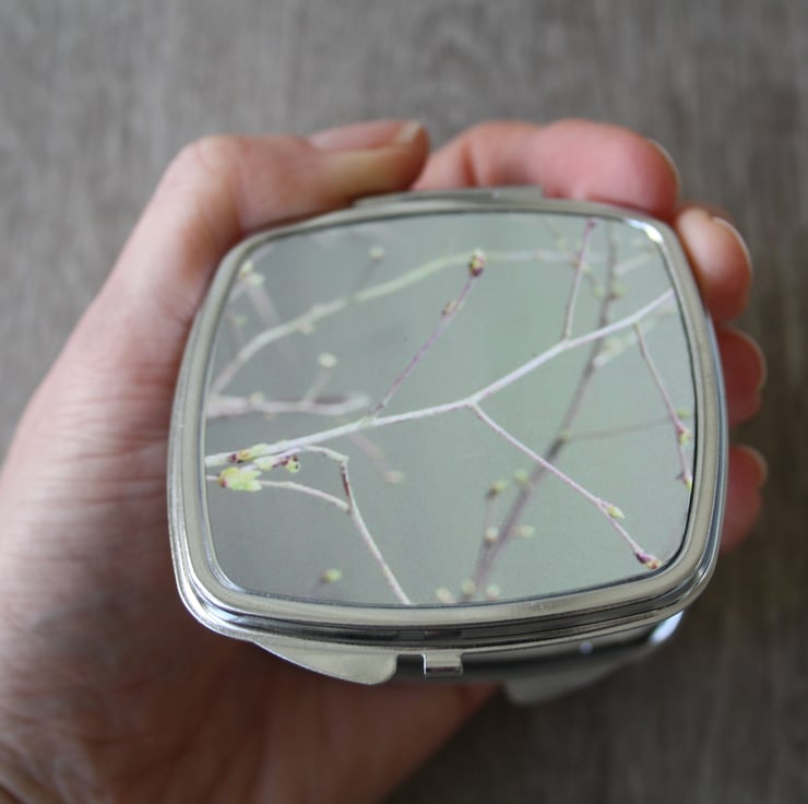 Compact mirror - pocket mirror - sage green branch print.