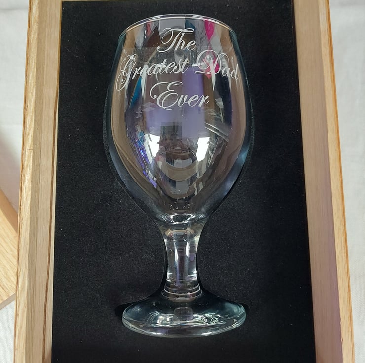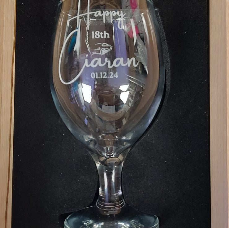 400ml Beer Glass, with Laser Engraved Design, hundreds of designs to choose from or can be personalised / bespoke in a luxury lined solid oak gift box.