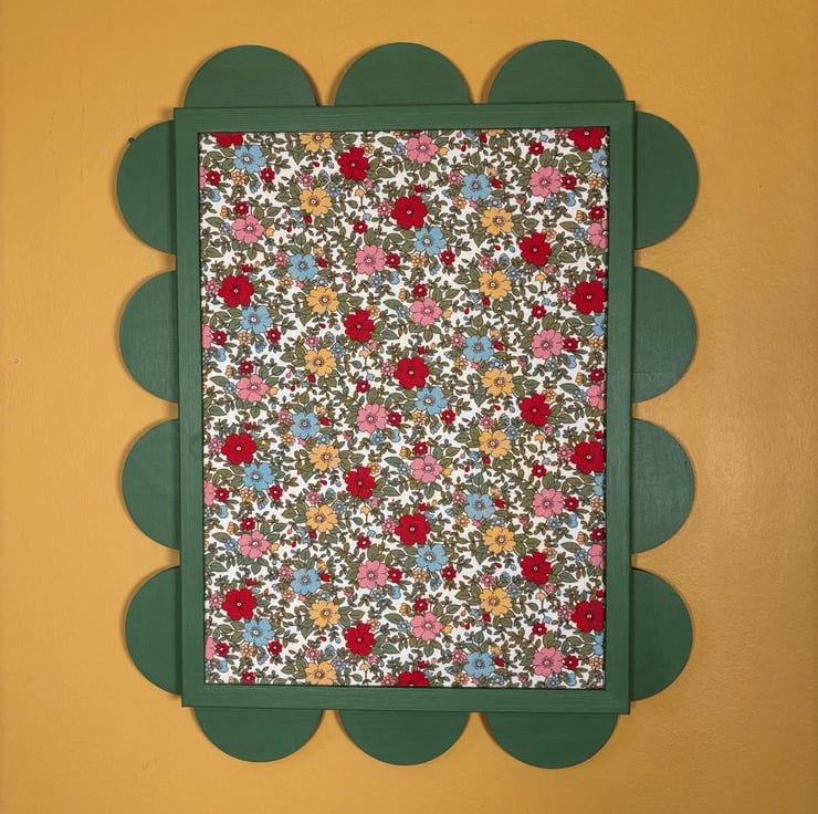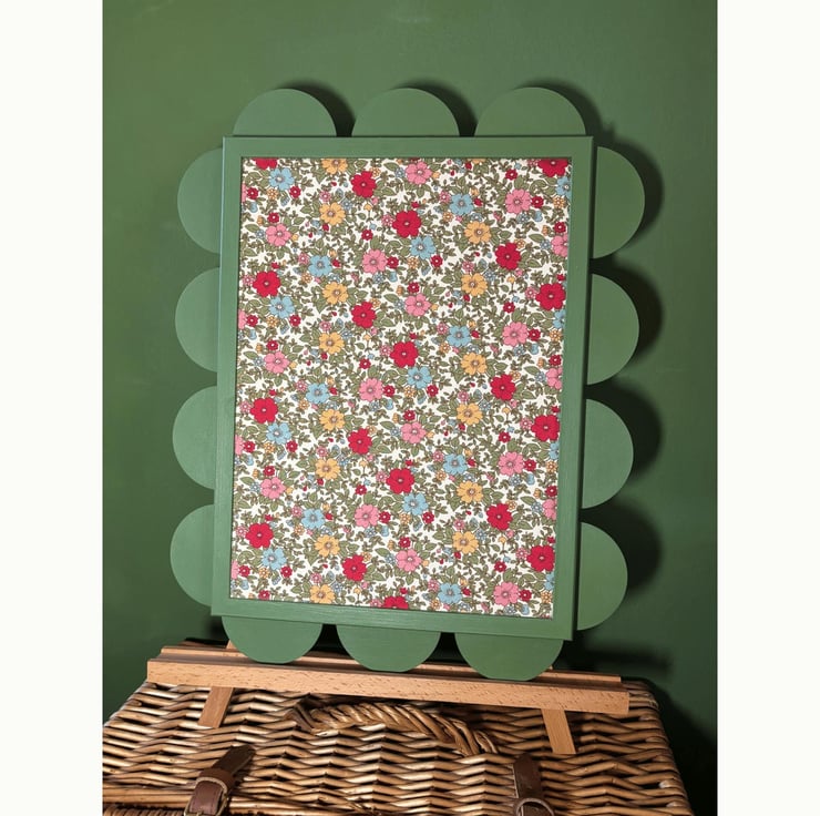 Named for our friend Jo, this floral and green combination perfectly encapsulates her love of the outdoors, nature and flowers and this picture board practically named itself. The lovely deep green scalloped surround beautifully frames the classic floral design and like all of our picture boards, will look elegant in your home and who knows, even in a summer house or greenhouse!