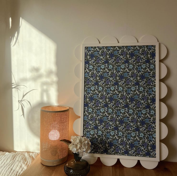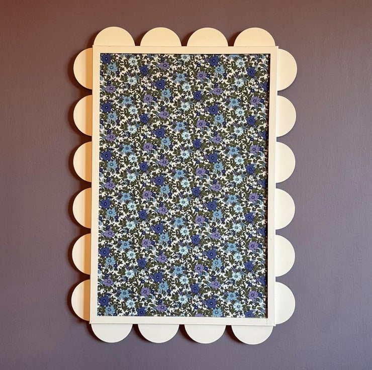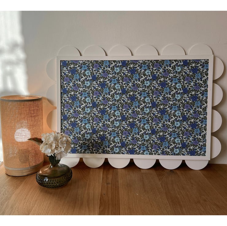 Oh my, this board is gorgeous, so strong and formal, with a slight edge of softness in the floral blues in the fabric, the qualities of which are found in the namesake. Strong cream colour on the wood, the bold blue print fabric make this effortlessly classy and will help elevate your space, transforming your home into a sanctuary of sopistication and style!