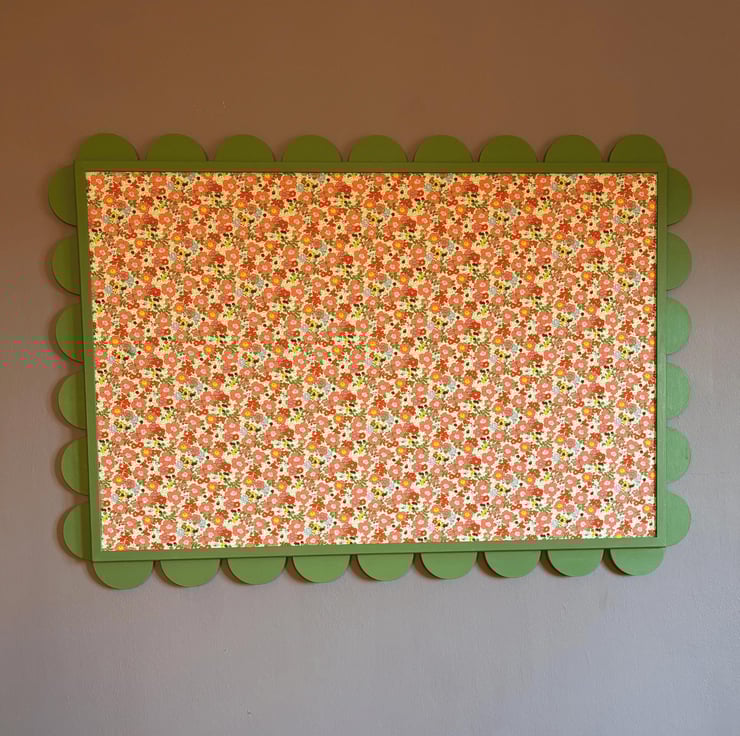 The Ellie is the original that inspired our business! This rich green wood and vibrant coral fabric give a really fresh look, adding a unique touch of elegance to any space. Holding a special place in our hearts, it is named after our daughter, Ellie. Perfect for those who cherish bespoke art, this piece exemplifies the essence of Pretty As A Picture Board bringing bespoke art to your home. Embrace the beauty of personalized design with a touch of love.