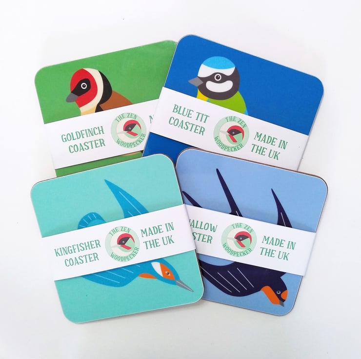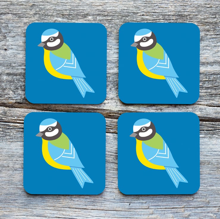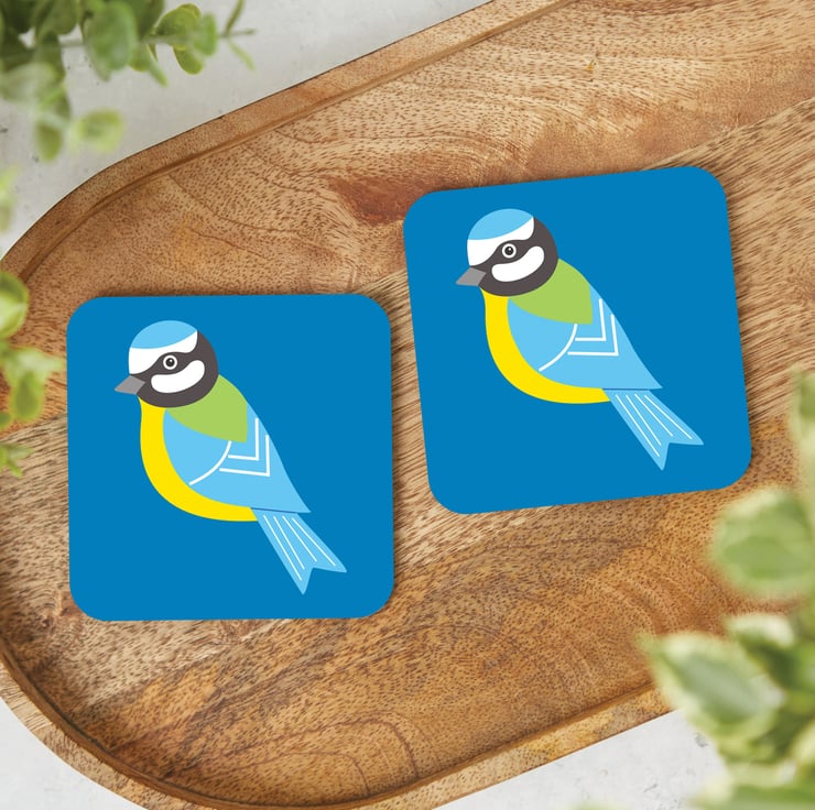 Choose either one coaster or a set of 2, 4 or 6 coasters from the drop-down menu, all in the same blue tit design.