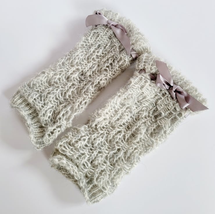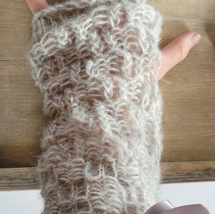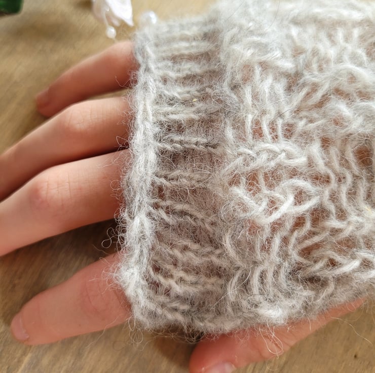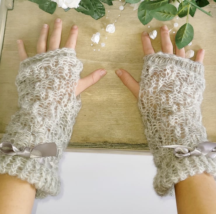 Check out these exquisite light grey Alpaca wool lace knit mittens, a perfect blend of elegance and comfort for your accessory drawer!