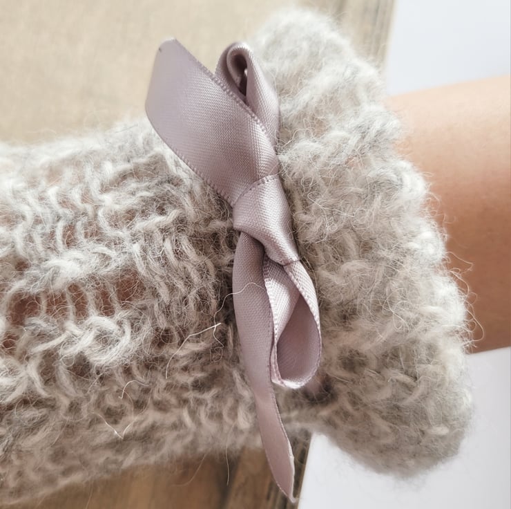Each pair features a charming grey bow detail that enhances their feminine appeal, making them a delightful accessory for chilly days, despite their delicate look. The luxurious Alpaca wool provides warmth and softness, ensuring your hands are protected from the nippy air while maintaining a breathable feel. Whether you're sipping your morning coffee, taking a stroll through the park, or simply enjoying a fun gathering, these mittens are the ideal companion.