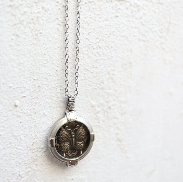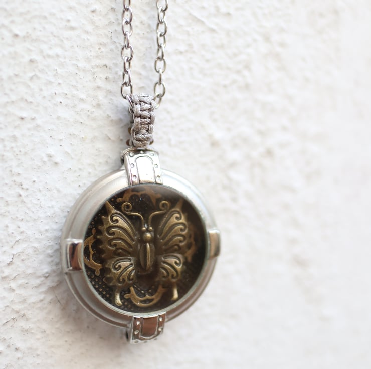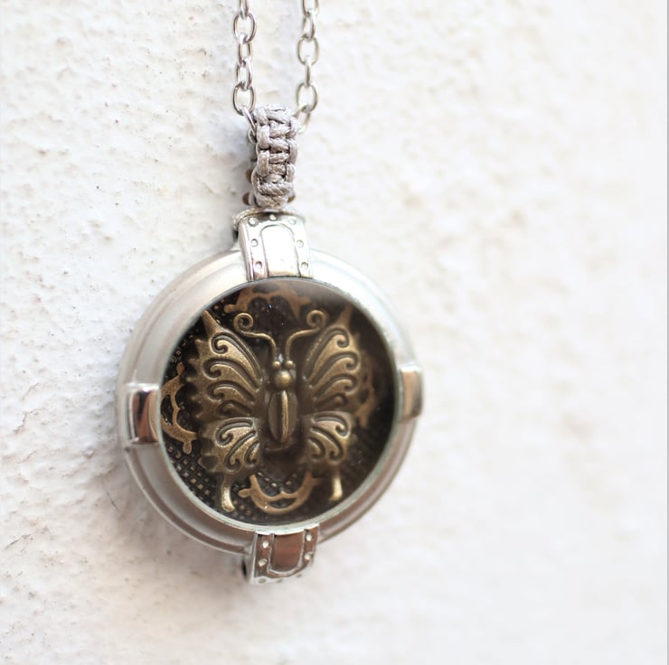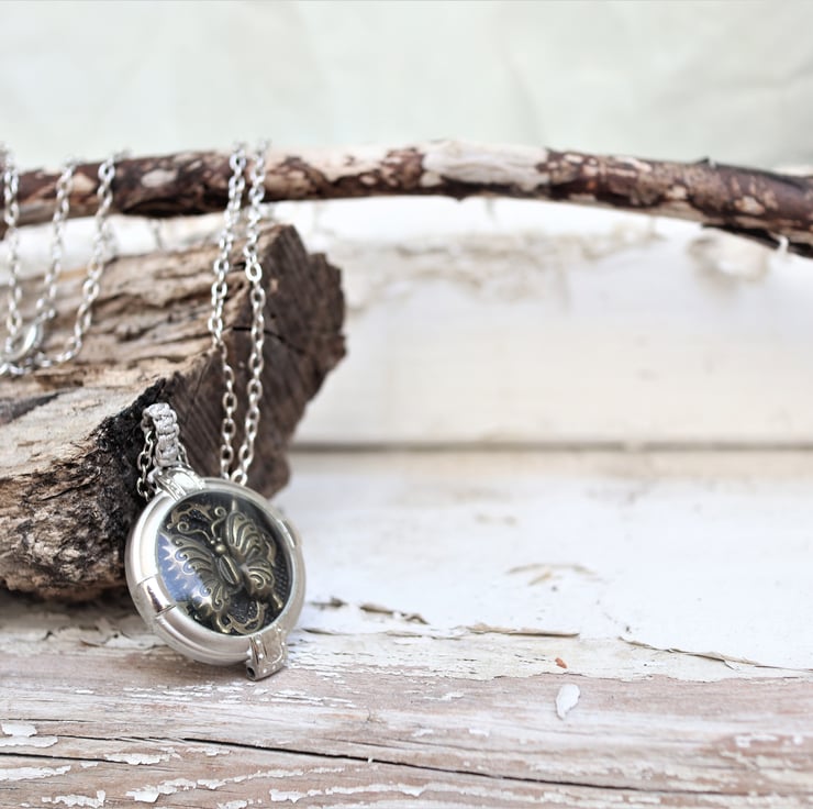 Upcycled Vintage watch case decorated with a vintage brass butterfly statement necklace
